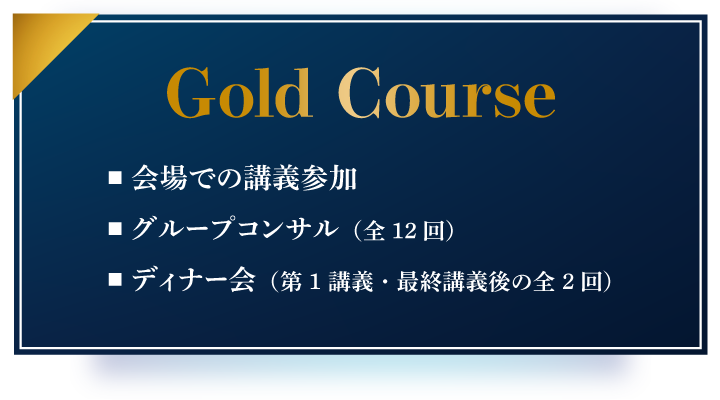 後日、お申し込みの皆様へ講義の録画・音声をお送りいたします。 (Goldコースのみ、グループコンサルの録画・音声も合わせてお送りいたします。) |